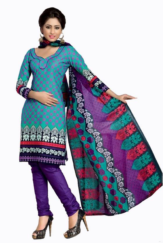 Unstitched Cotton Blend Salwar Suit Material Printed