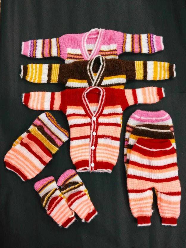 Care Instructions: Hand Wash Only Fit Type: Regular Material: Wool | Hand Made and Knitted Wool Sweater. Package Contents: 1 Sweater, 1 Pyjama, 1 Cap, 1 Pair of Socks