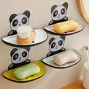PAGALYetrade Panda Design Wall Mounted Soap Dish Holder with Drain Tray (Pack-4) (Multicolor)