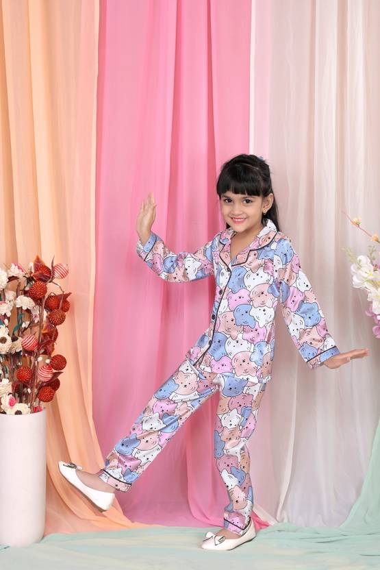 PAGHDAL BROTHERS Kids Nightwear Baby Girls Printed Polyester Blend (Multicolor Pack of 1)