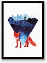 Painting Mantra Red Fox With Mountain Abstract Framed Art Print For Kids Room Decor Digital Reprint 17 inch x 12.9 inch Painting (With Frame)