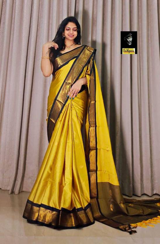 Paithani Printed Paithani Pure Silk Saree (Yellow)