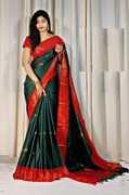 Paithani cotton silk saree, embroidered saree, magenta saree, green saree, zari border saree, wedding saree, festive saree.