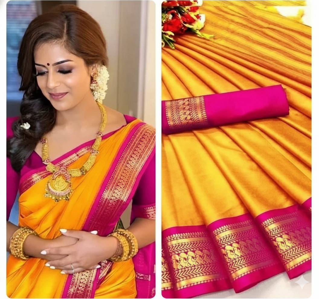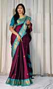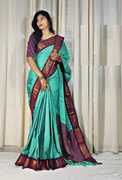 Keywords: Paithani cotton silk saree, embroidered saree, magenta saree, green saree, zari border saree, wedding saree, festive saree.