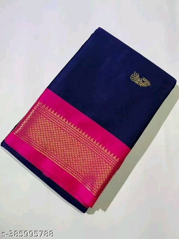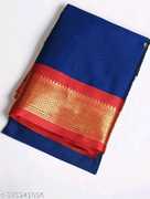 Paithani Self Design Kalamkari Silk Blend Saree (Blue)