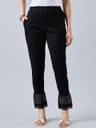 Women lycra rayon trouser Pants has elasticated waistband, 1 Seam Pocket and embellished design.