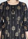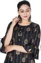 Black Printed Flared kurta, has a Round neck, three-quarter sleeves, Flared hem. Show off your elegant style with a brand new kurta from PAKI FABRICS. For your next dinner party or family gathering, this Black piece pairs well with light leggings and chic flats