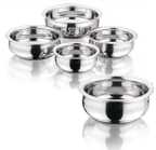 PAL stainless steel handi/urli/tope Handi 2.1 L, 1.6 L, 1.1 L, 0.8 L, 0.5 L (Stainless Steel, Bottom) Cookware Set (Stainless Steel, 5 - Piece)