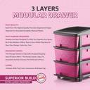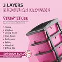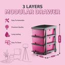 PALAK 3 Plastic Modular Transparent Drawer System for Home, Office, Hospital, Parlor Plastic Free Standing Chest of Drawers (Finish Color - Pink, Door Type- Hinged, Pre-assembled)
