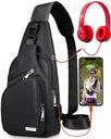 DURABLE MATERIAL: The crossbody bag is made of premium polyester fabric of lightly waterproof, wear resistant and lightweight, fine stitching makes it more durable.LARGE CAPACITY: Dimension-13 x 6.7 x2.76 inches (L x H x W). The waist pack is with 4 pockets, front zipper bag for easy access, main zipper compartment with a quick release buckle for safety, back zip bag, Proper capacity but lightweight design could help you store your daily essentials such as phone, cards, wallet, keys, etc.ADJUSTABLE BELT: The adjustable belt makes it can fit most people to use. And you can wear it as a chest bag, shoulder bag, crossbody bag, any style you want.USB PORT AND HEADPHONE WIRE HOLE DESIGN: More user-friendly design is we add USB port on the side of the bag, allowing you can charge your phone convenient, no hassle of holding your powerbank all the time. A headphone wire hole allow you can enjoy the music on the trip with music device or phone staying in the shoulder bag.DAILY USE FOR ANY OCCASION: Where you go, this bag will be your item helper, lightweight pack make the journery easier. Perfect for travel, hiking, camping, daily out, school, office, etc. Classic and simple design also makes it a good gift choice for all.