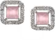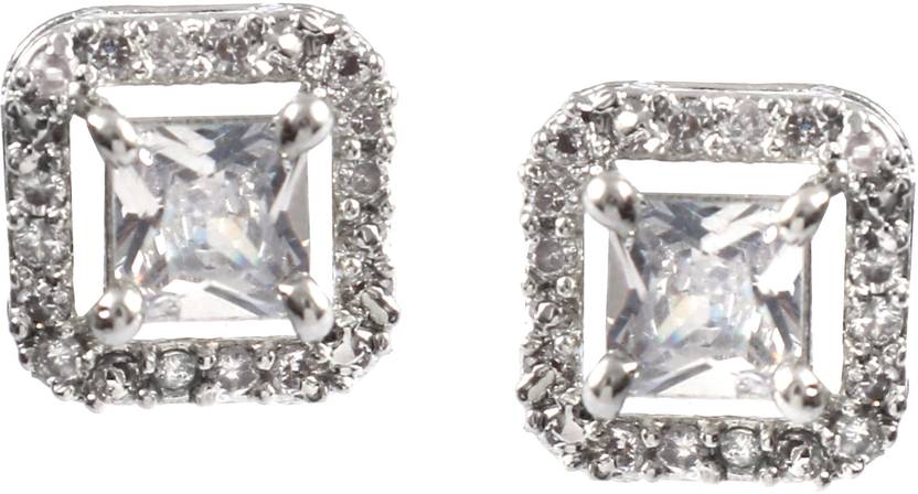 Earrings Silver Plated Square Tops Ad Cz Multi-Color Stones Boxy Design Stud