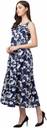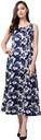 The blue floral print long maxi dress comes a subtle flattering flares that floats as you walk. It is a Sleeveless wide-strap style with an easy zip closure and an extra attached pair of sleeves with round neck and a smooth elastic on the waist to give you perfect fit. Pair it with shoulder grazing earrings and tie up sandals for all things special. MADE IN INDIA