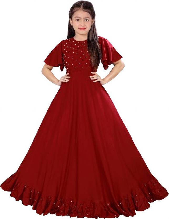 PAMMISTAR Solid Rayon Blend Stitched Anarkali Gown (Maroon)