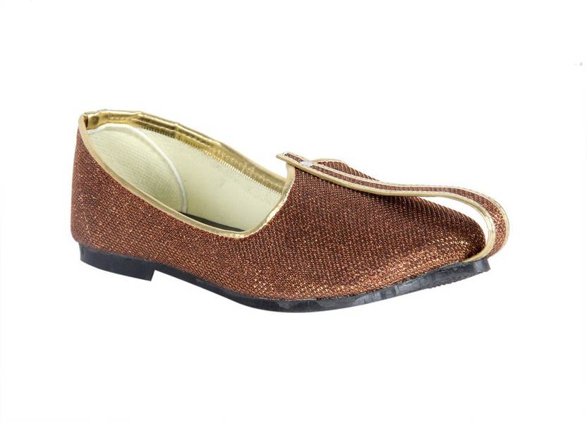 Need the perfect pair of footwear to match with your ethnic outfit for your friends wedding? Panahi presents an exclusive ethenic wear footwear collection with super comfortable pvc sole that keeps your feet happy. Featuring a copper-brown pair of jutis that ill perfectly compliment your traditional look.