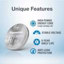 LONG-LASTING POWER for your specialty devices, CHILD RESISTANT PACKAGING to help keep children safe, Lasts up to 10 YEARS in storage*, Operates well in EXTREME TEMPERATURES
