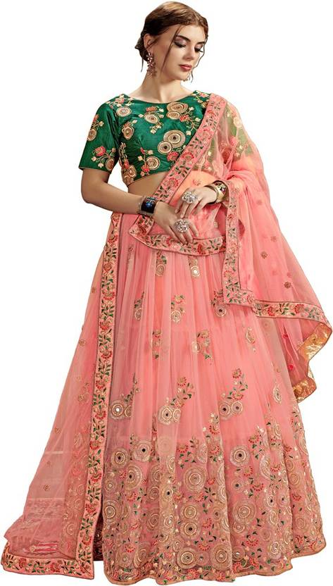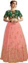 Embroidered Semi Stitched Lehenga CholiĀ Ā (Green, Pink)