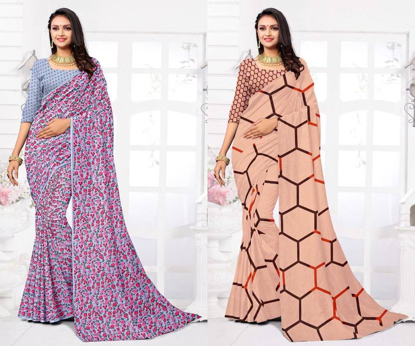 Printed Daily Wear Georgette Saree (Pack of 2, Beige, Grey)