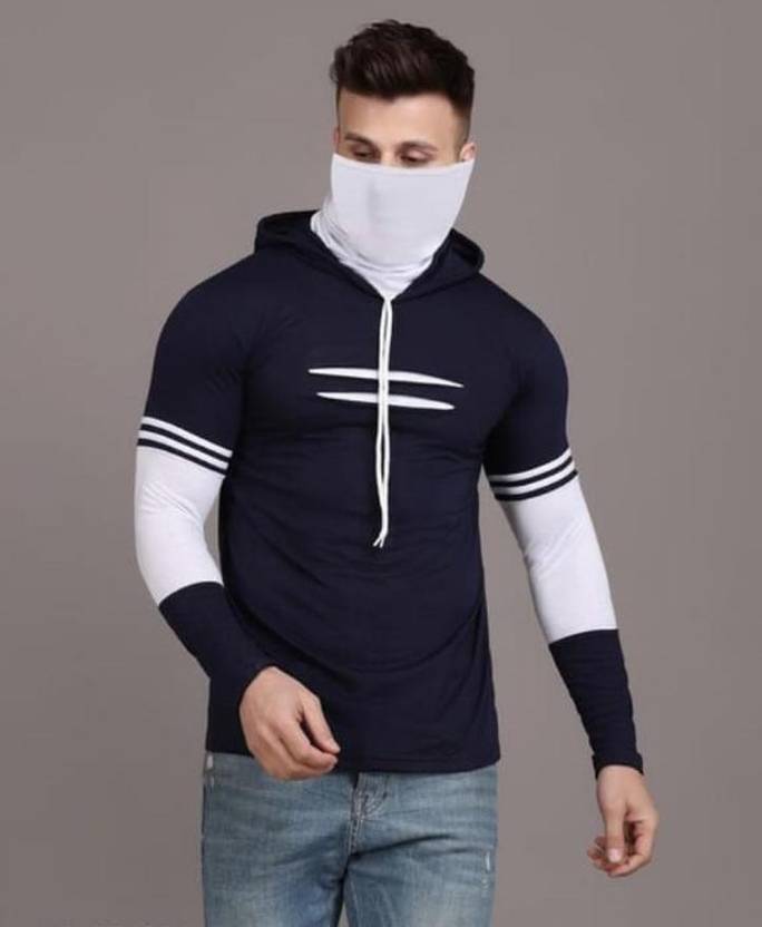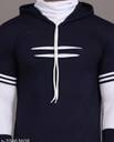 Panda Bear Colorblock Men Hooded Neck Dark Blue, White T-Shirt