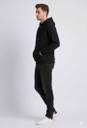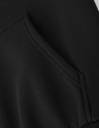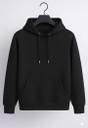 There is a large kangaroo pocket on the front, where the model's right hand is placed.