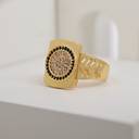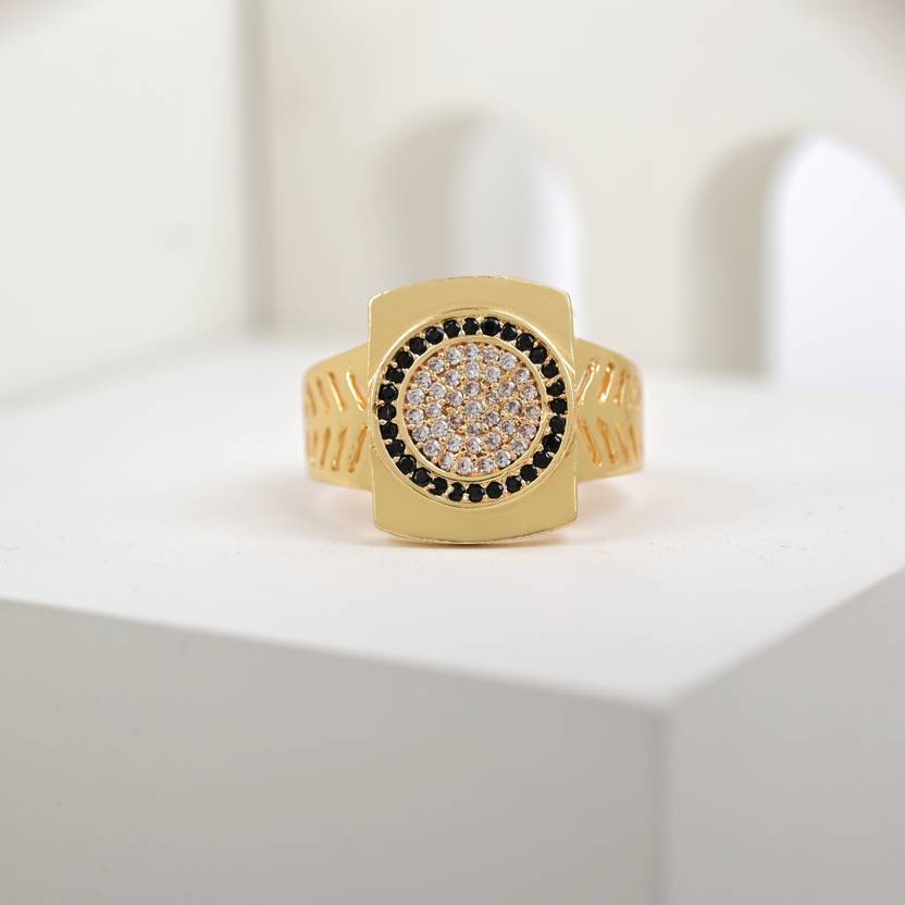 This “Pandadi Jewell” Gold Plated ring is made of brass. This ring is studded with american diamond. The model of the ring is made of CAD/CAM design which gives look of real diamond jewelry. The platting of metal is done by 18ct. gold. This ring has high end fashion design which has elegance and style that will add radiance to natural beauty of men. Thus, beautiful and contemprary Fashion Jewellery is made available at very reasonable prices to our valuable customers.This gold ring is a masterpiece of artistic craftsmanship and is stunning to look at.