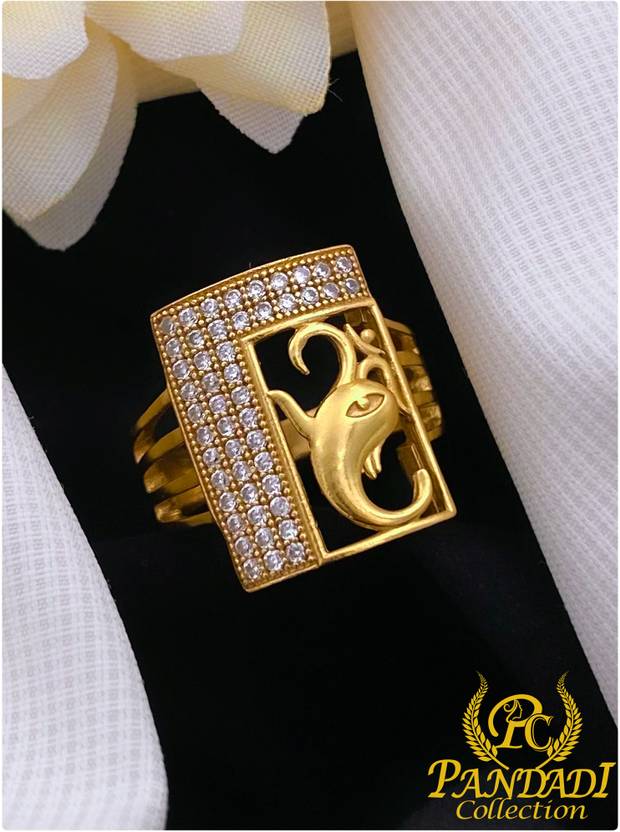 Gold Plated ring is made of brass. This ring is studded with american diamond. The model of the ring is made with extracare while designing which gives look of real diamond jewelry. The platting of metal is done by 18ct. gold. This ring has high end fashion design which has elegance and style that will add radiance to natural beauty of men. Thus, beautiful and contemprary Fashion Jewellery is made available at very reasonable prices to our valuable customers.This gold ring is a masterpiece of artistic craftsmanship and is stunning to look at.