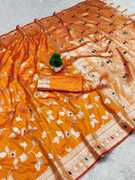 Explore The Collection Of Beautifully Designed Saree. Saree Color: Peach || Saree Work: Woven Zari meenakari work || Saree Fabric: Cotton Silk | Blouse Fabric: Cotton Silk|| These Saree Are Perfect For Occasions And Events Anytime Of The Day Or Night.