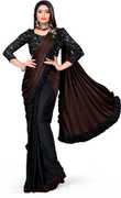 Explore the collection of beautifully designed Saree from Panetar Sarees. Each piece is elegantly crafted and will surely add to your wardrobe Gracefully woven by skilled artisans using high-quality threads and this saree makes a perfect addition to the wardrobe for all occasions. The simple yet stylish Stitched Saree with Ruffle designs, is elegantly Made of Solid Lycra Blend Fabric. Pair this piece with heels or flats for a graceful look. Fabric - Lycra Blend Blouse- Unstitched (0.8 m) .