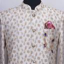 Panjatan Crownly Framed Neon Cyan Pearl and Hanging Crystal Brooch (Turquoise)