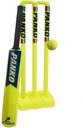 Comes with 1 plastic cricket bat, 1 ball, 3 plastic stumps + Base & 2 bails., Complete plastic cricket wicket yellow stumps set made from good quality heavy duty plastic material. Must cricket equipment to set the game. Durable movable easy to fit due to removable stumps bails & stand base., Long Lasting and Durable Product; Great for juniors, training & the backyard., Lightweight, Stable, Ease of use, Easy to carry., Stumps size :- 30 Inches ; Bat size:- 32 Inches ; Weight of set :- 1.25 kg.