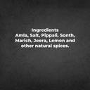 Ingredients | - Amla, Salt, Pippali, Sonth, Marich, Jeera, Lemon, Other natural spices.