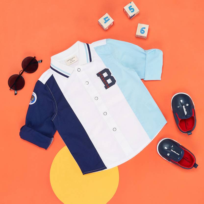 These fits are full of fun and character! The shirt features a polo collar with a button placket, cuffed full sleeves and a colour-blocked body with detailed patches. Crafted from a top-notch material that will provide your kid with utmost comfort and ease.