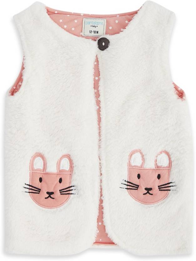 Dress up your little one in this cute and charming jacket this season. The style features a round neck with single button closure, sleeveless design and cute appliques on the front. Furthermore, the jacket has a furry, textured body and an all-over beautiful starry print on the inside. This jacket is designed from a top-notch quality fabric that will offer your munchkin excellent warmth and a stylish look.