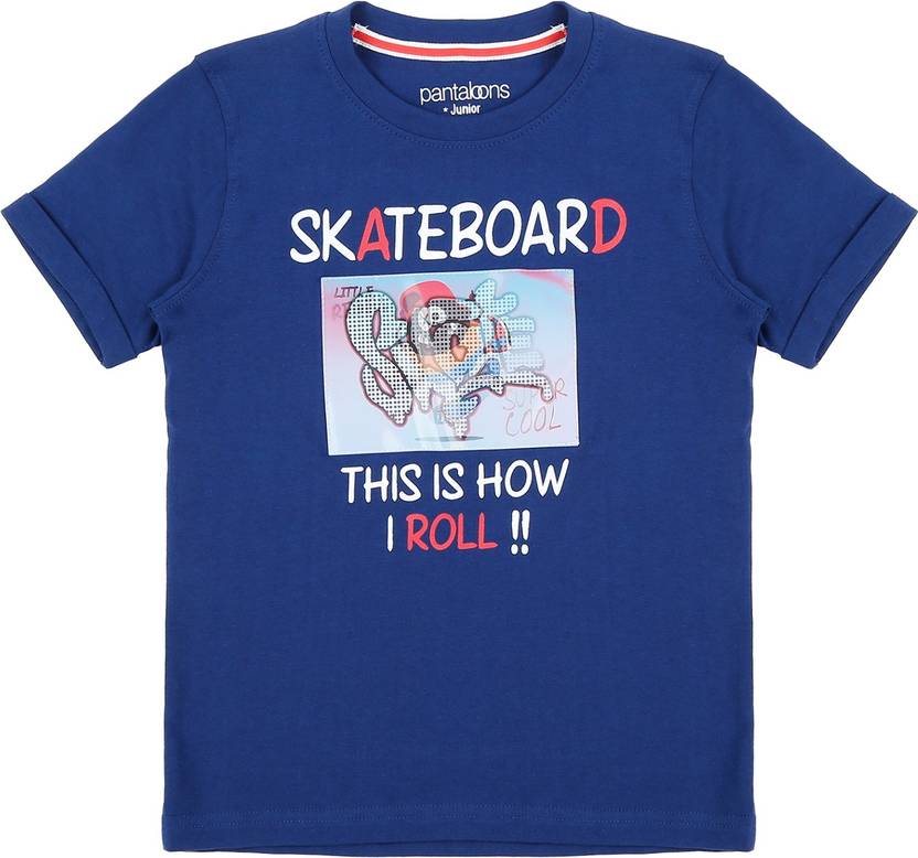 Pantaloons Junior Boys Graphic Print Pure Cotton Regular T Shirt (Blue, Pack of 1)