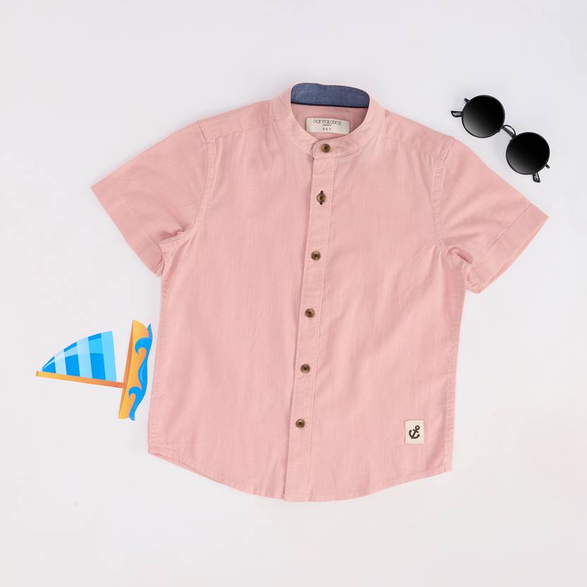 Redefine your kid's style with this cool shirt. It has a mandarin collar with a button placket, half sleeves and a clean, pastel body. Constructed from a woven fabric to provide ample breathability and a stylish appeal.