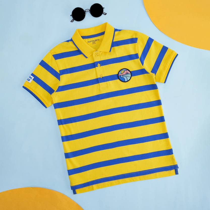 Boys Striped Pure Cotton Regular T Shirt (Yellow, Pack of 1)