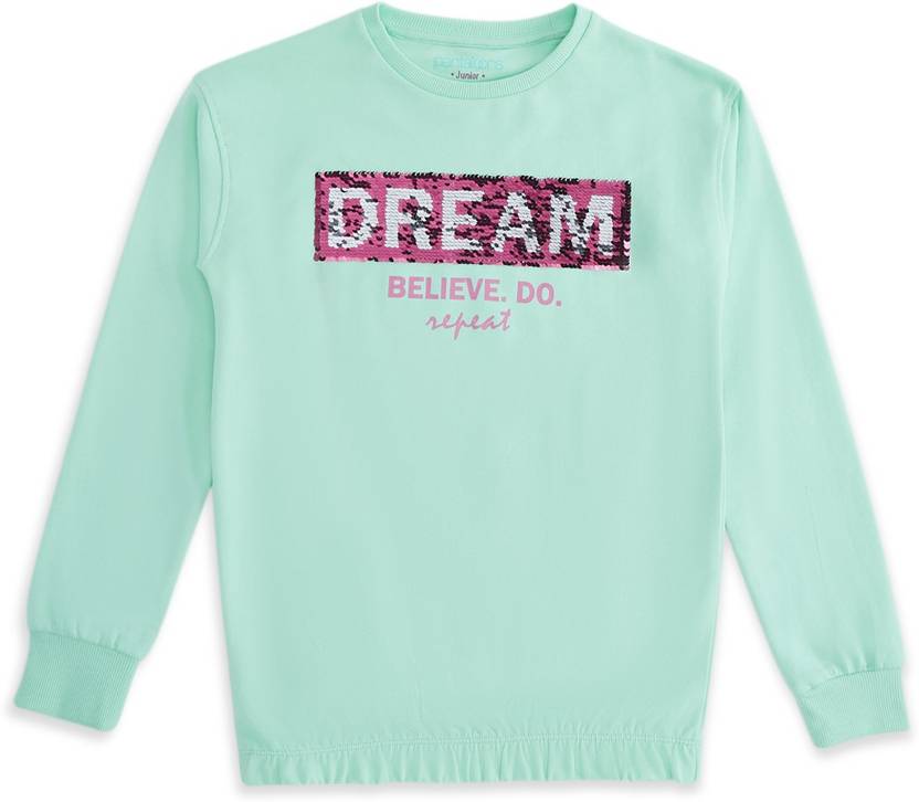 Add some extra sheen to your little heart's closet with this latest and most attractive sweatshirt. The featured style details are a crew neck, full sleeves and a captivating sequin artwork on the chest. The further details include ribbed cuffs and an elasticated bottom. Crafted from premium cotton material that ensures a soft feel and touch to your kid's skin.