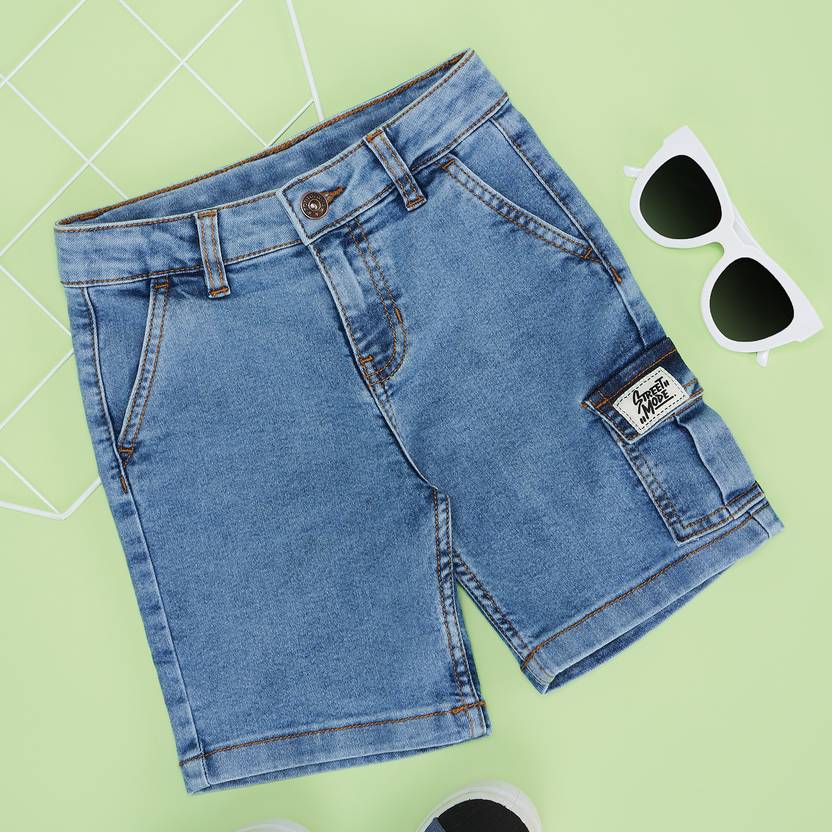 Pantaloons Junior Short For Boys Casual Solid Cotton Blend (Light Blue, Pack of 1)