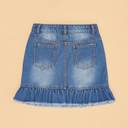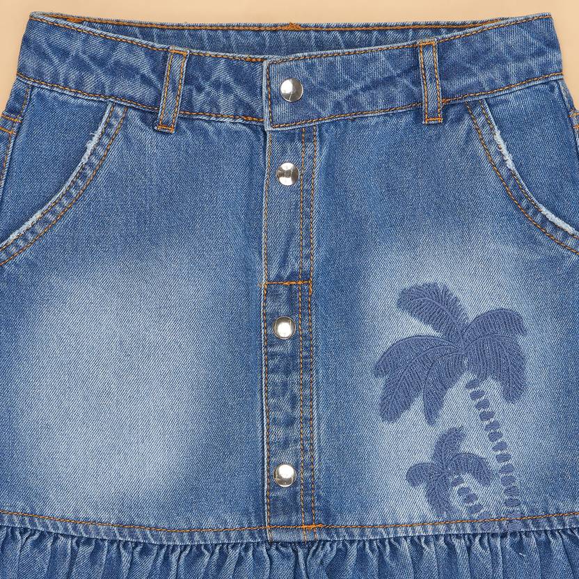 Let your little one wear comfort, style and charm all at once! The skirt has a front opening, multiple pockets, chill embroidery and a detailed hemline. Made from a quality denim fabric to bring out the best wearing experience.