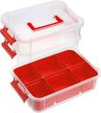 | Key Features | - This clear plastic visible storage in the right size for your needs from art and craft supplies, tools, medicine, first aid kit, sewing kit, cosmetics or fishing supplies., It features a handle for easy transporting and a removable tray with small compartments to keep the smaller things organized and bigger items can be stored underneath the tray., Stackable tiers, each tier can be stacked to customize the compartment in order to different items. And 3 tiers that each lock together with a latch, keeps contents secure., environmentally friendly PP hard plastic; transparent., 6-compartment top tray can be quickly removed to access a lower tiers for different storage needs., Top handle allow for easy transportation, this carrying case can be used for storing sewing & bead, bobbins, colored beads, jewelry, loom bands, Lego pieces, tiny figurines, cross stitch threads, scrapbooking supplies and other art supplies.