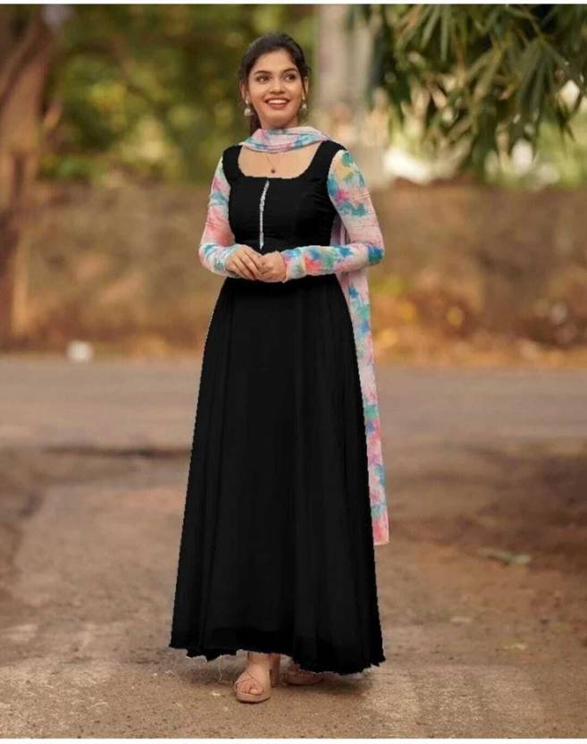 Solid Georgette Stitched Anarkali Gown (Multicolor)