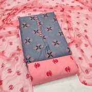 Dupatta: The dupatta is created from najmin fabric, known for its lightweight and flowing nature. Adorned with a complementary print, it enhances the overall outfit with an extra layer of grace.