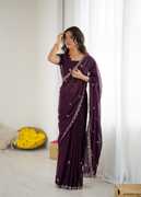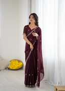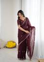 Explore The Collection Of Beautifully Designed Saree. Saree Color: Maroon || Saree Work: Thread Embroidery || Saree Fabric: Georgette | Blouse Fabric: Georgette|| These Saree Are Perfect For Occasions And Events Anytime Of The Day Or Night.