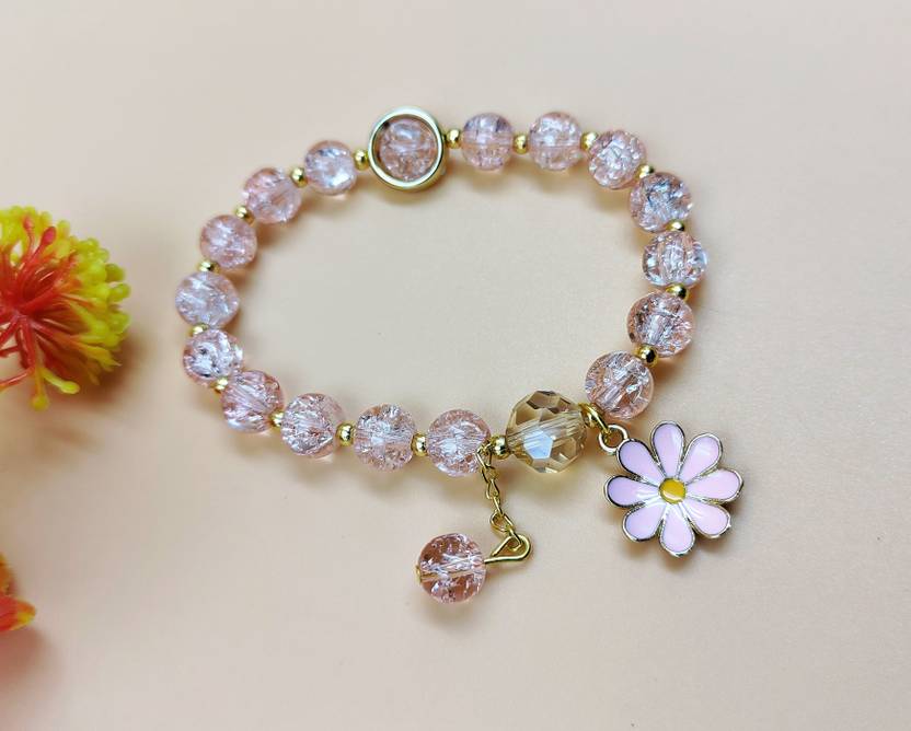 Light Orange Flower Pearl Design Beaautiful Bracelet for girls