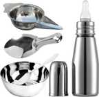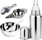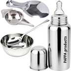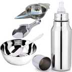 Pappa New born baby Gift set of Regular steel feeding bottle , Feeder, Spoon set, Bowl - 300 ml (Silver)