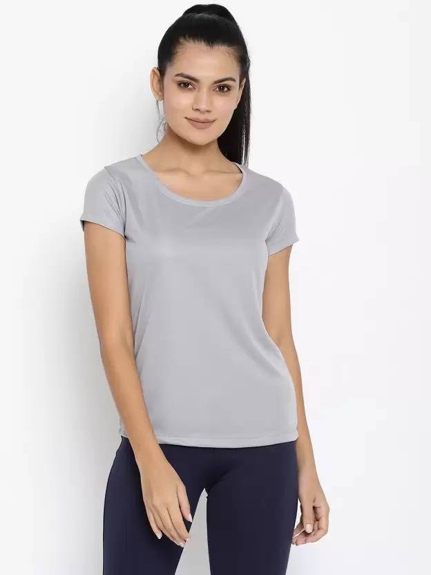 Women Solid Round Neck Polyester Grey T-Shirt