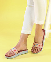 Paragon K7012L Women Sandals Comfortable Leather Soft Cushion Easywear Slip On Slippers Women Flats (Maroon , 5)