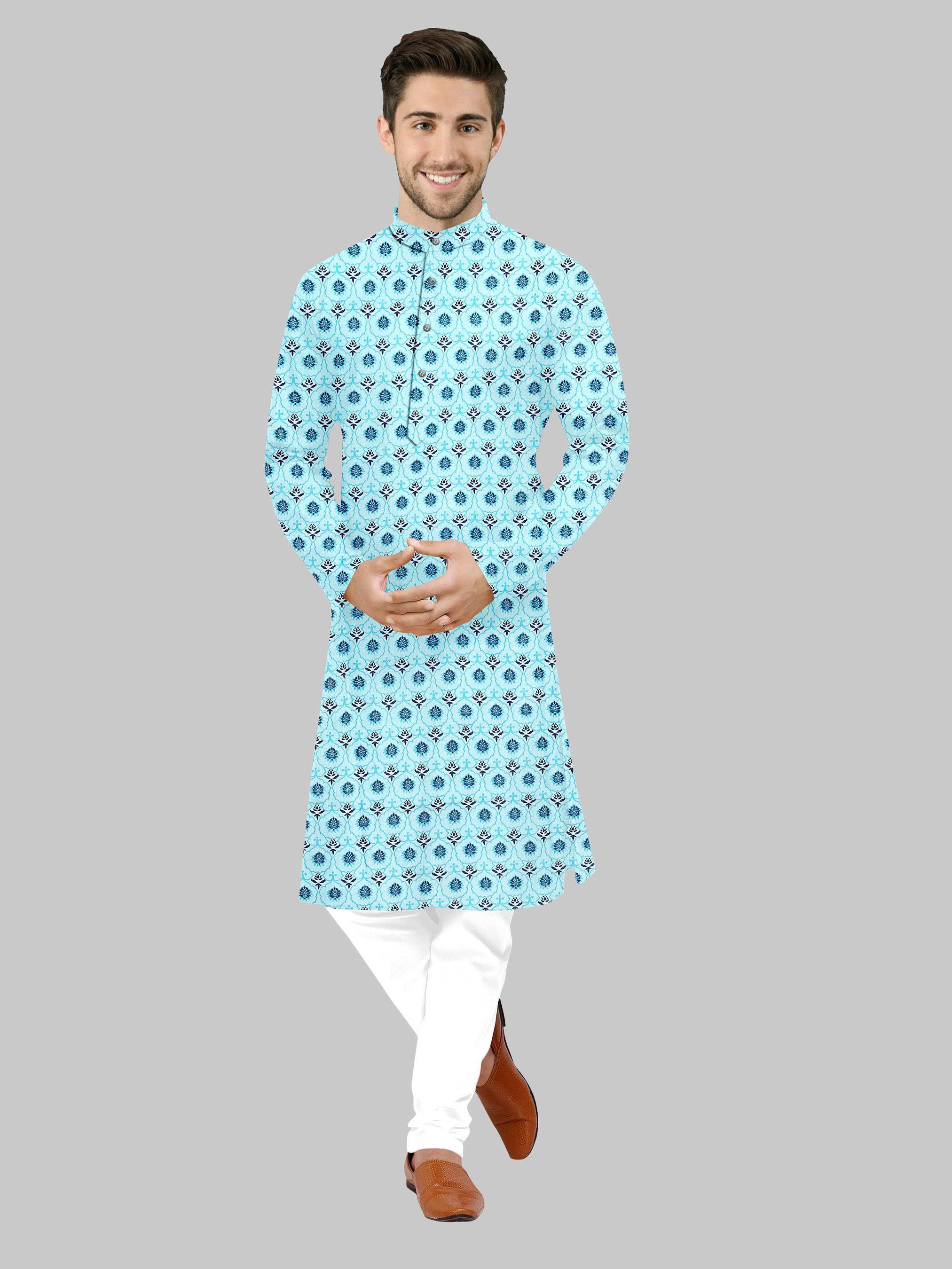 This luxury traditional Indian kurta pajama 2-piece set includes a top (kurta) and a bottom. Loose fitting sleeves and slits along the sides allow for an easy fit and let air circulate freely through the garment. The pant included in this kurta pajama set has a relaxed fit through the seat and legs for absolute comfort. Loose comfortable fitting makes it a great wear.