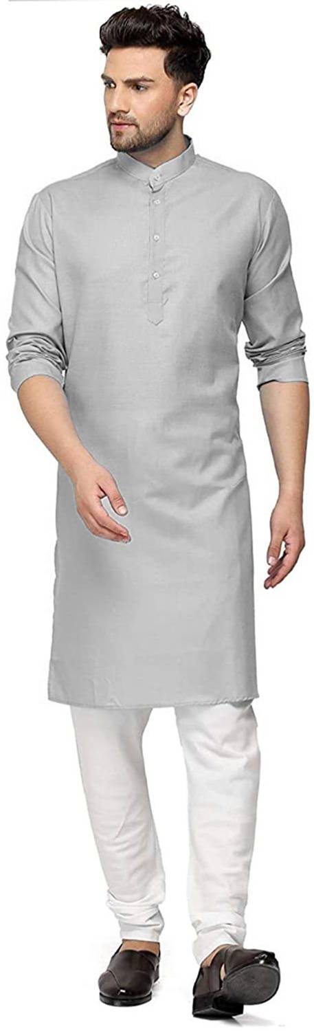 PARALLEL TIMES Men Solid Pure Cotton Straight Kurta  (Grey)