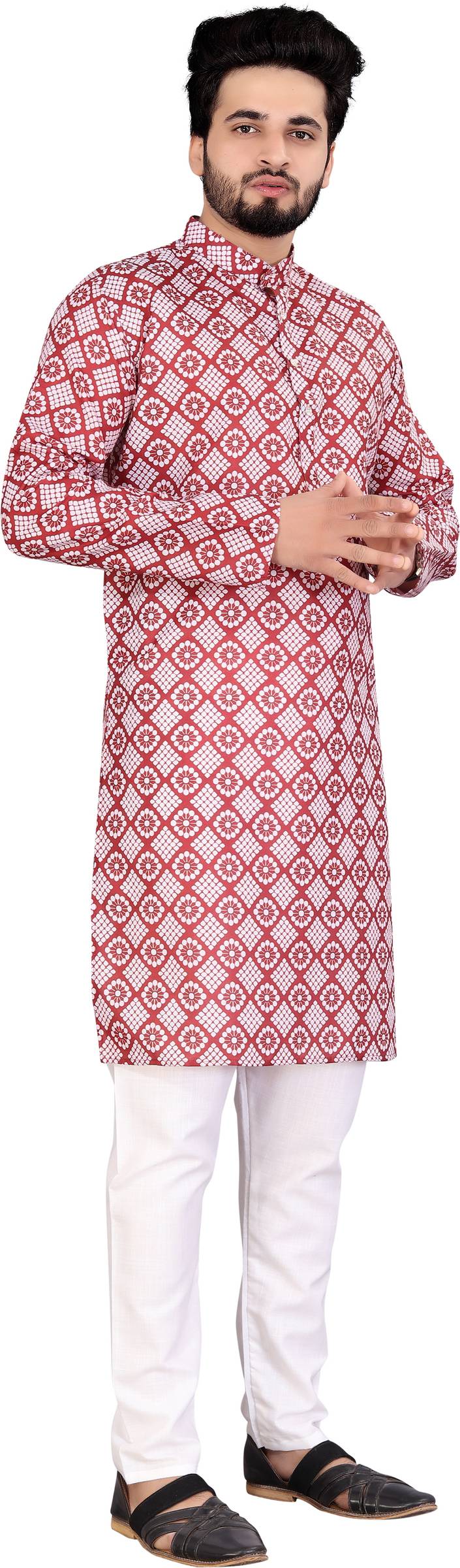 PARALLEL TIMES Men Solid Straight Kurta (Red)