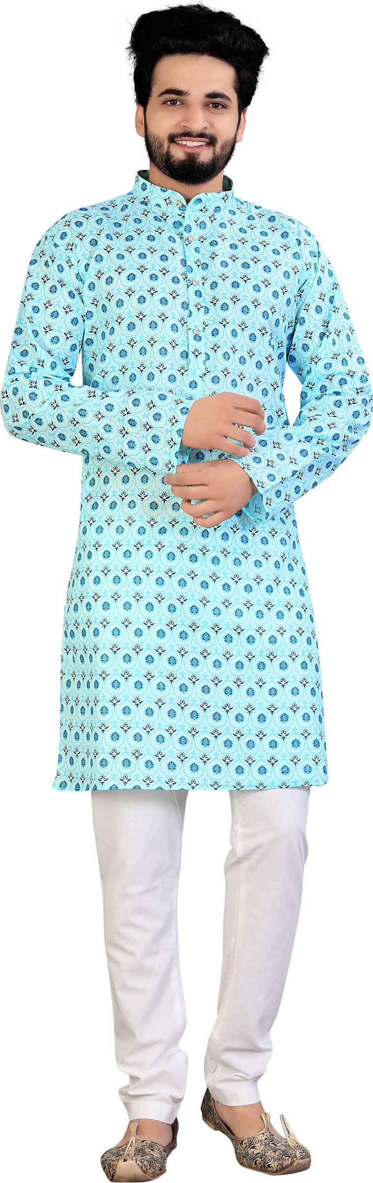 PARALLEL TIMES Men Solid Straight Kurta (Light Blue)